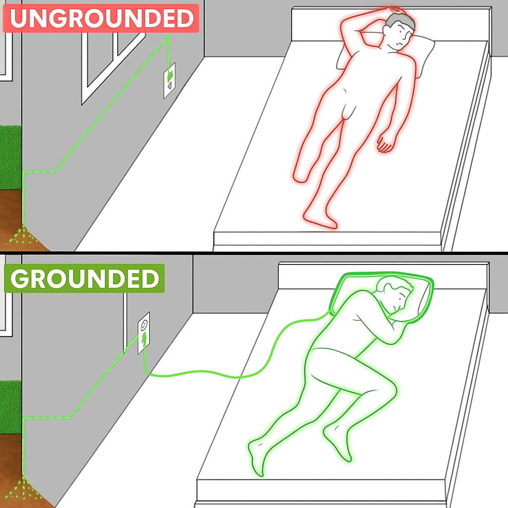 Just like tuning an instrument, aligning with this natural frequency helps harmonize the body’s own bioelectric field. Modern environments — with EMFs, stress, and artificial light — often knock this rhythm out of sync, leaving us restless and overstimulated.